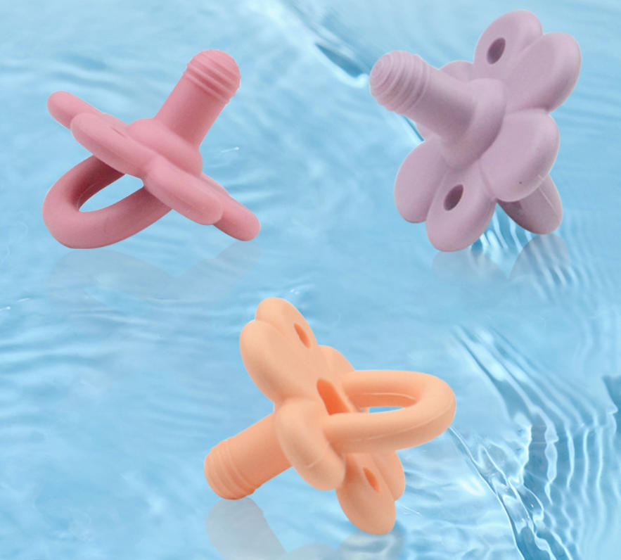 This flower-shaped pacifier embodies that commitment: