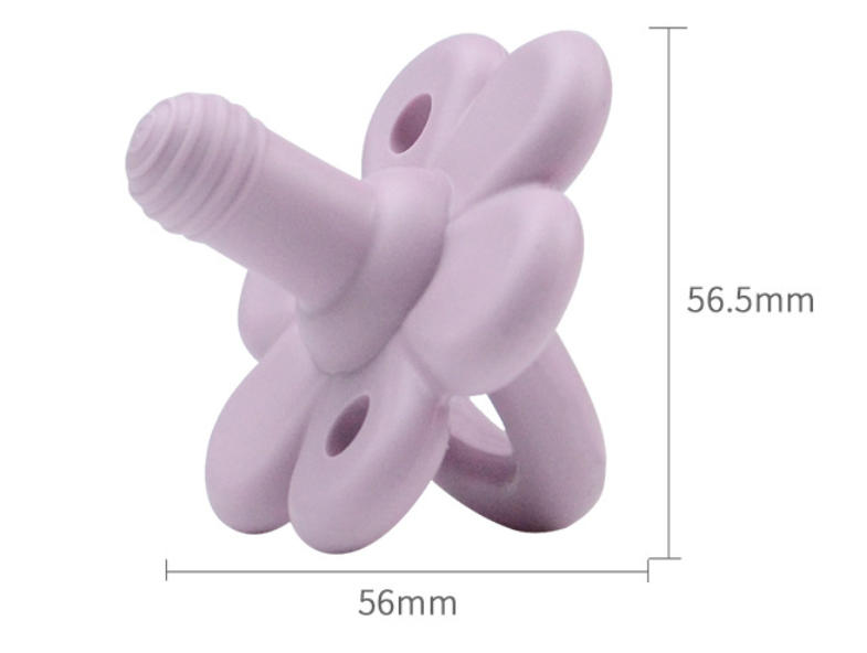 The flower-shaped shield and the nipple itself provide excellent surfaces for chewing. The soft, resilient silicone is satisfying for sore gums to bite down on. This gives the product a dual function: it soothes the emotional need for sucking and the physical need for chewing.