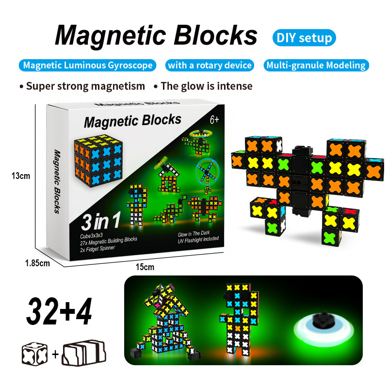 • Functions: Magnetic Construction, Fidget Spinning, Glow-in-the-Dark Effect, DIY Creative Building