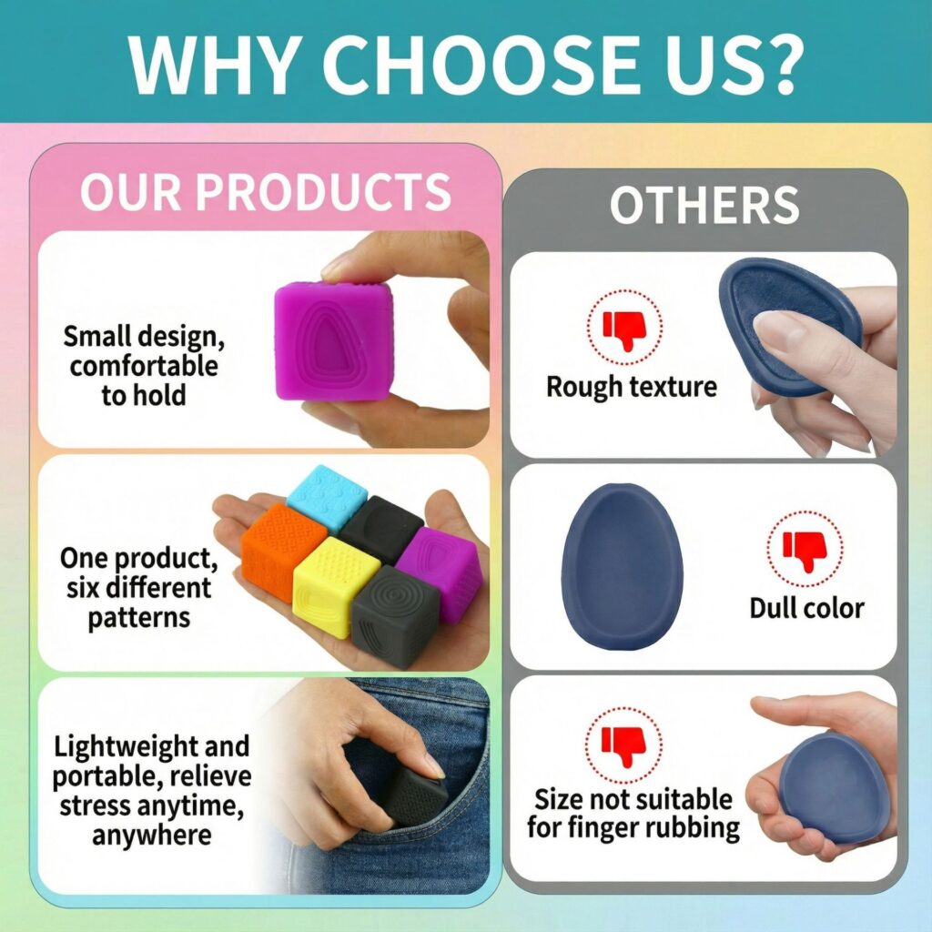 - Emotional regulation: When a 4‑year‑old feels frustrated, handing them a squishy silicone cube gives them a safe, physical outlet. Over time, they learn to reach for the cube instead of hitting or crying.